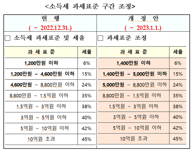 소득세 과세표준 구간 조정